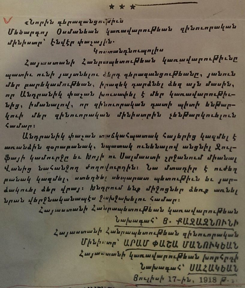 ← Անդրանիկ Փաշային «վերջնականապես ջախջախելու» վերաբերյալ նամակը կեղծ է ՀՅԴ-ին վարկաբեկելու համար. Արխիվի տնօրեն