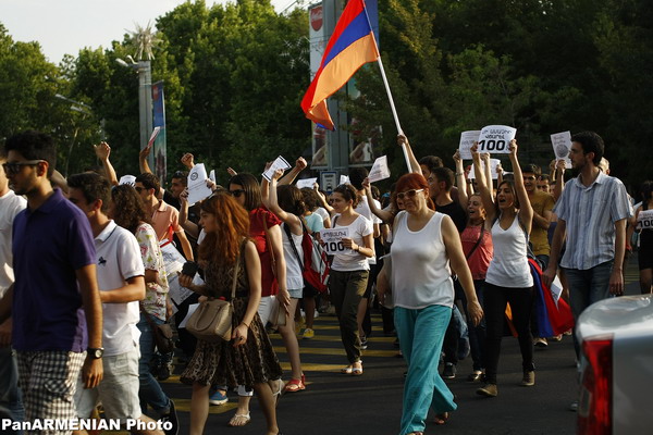 «Դուք պատասխան եք տալու, դուք պատժվելու եք: Մենք ենք այս երկրի տերերը»,- հայտարարում էին երիտասարդները: Ակցիայի մասնակիցները վստահեցնում էին, որ սա ոչ թե կուսակցությունների, այլ քաղաքացիական պայքար է: «100 դրամը ընդամենը առիթն է այս ամբողջ լարվածության, ժողովրդի բարոյահոգեբանական վիճակի, 100 դրամը դարձավ առիթ, որ ժողովուրդն ընդվզի»,- ասում էին երիտասարդները: