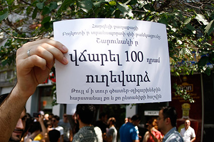 Դիմելով քաղաքապետ Տարոն Մարգարյանին՝ նկատեցին. «Դուք ընտրություններից առաջ խոստացաք, որ տրանսպորտը չի թանկանալու, բայց բոլորիս խաբեցիք եւ ընտրություններից հետո թանկացրիք, որպեսզի վերադարձնեք ձեր 5000 դրամները: Հետո էլ ասում եք՝ թասիբով թալինցի, սասունցի եմ»: «Հար-յուր, հար-յուր, 150 դրամ չե՛նք վճարելու»,- բղավում էին ակցիայի մասնակիցները: