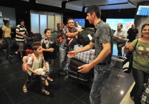 Ֆրանսական «Ա.Էֆ.Փէ.» լրատու գործակալութիւնը սուրիահայերու Երեւան ժամանելու այս լուսանկարը գործածած է լրատուութեան հետ