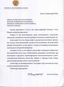 Ստորեւ` նախագահ Սարգսեանի շնորհաւորական ուղերձին պատճէնը: