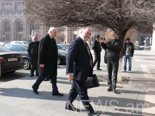 ԵԱՀԿ ՄԽ համանախագահներ Իգոր Պոպովին, Ջեյմս Ուորլիքին ու Ժակ Ֆորին, նաեւ ԵԱՀԿ գործող նախագահի անձնական ներկայացուցիչ Անջեյ Կասպրշիկին ԱԳՆ շենքի մոտ դիմավորեցին «Ո’չ» կեղծավոր քաղաքականությանը, «Ո’չ» երկակի ստանդարտներին վանկարկումներով։