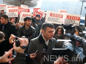 Մինչեւ համանախագահների ժամանելը ՀՅԴ «Նիկոլ Աղբալյան» ուսանողական միության վարչության ատենապետ Գերասիմ Վարդանյանը հայտարարեց, որ Ղարաբաղյան հակամարտության կողմերին հավասարապես մեղադրելու համանախագահների դիրքորոշումը նպաստում է ոչ թե խաղաղության գործընթացին, այլ Ադրբեջանի ռազմատենչ հայտարարություններին։