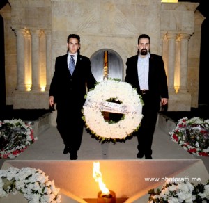 Տասնեակ հազարաւոր հայորդիներով ողողուած Նահատակաց հրապարակին վրայ երեկոյեան ժամը 9:00-ին տեղի ունեցաւ ոգեկոչման ձեռնարկ` ներկայութեամբ լիբանանեան պետական-քաղաքական, կուսակցական պատկան մարմիններու ներկայացուցիչներու, հոգեւորականներու: Լիբանանի եւ Հայաստանի քայլերգներէն ետք բացման խօսքը արտասանեց Արին Ղազարեան. ան հաստատեց, որ 99 տարի ետք հայութիւնը չի մոռնար իր դատը եւ պիտի չմոռնայ, այնքան ատեն որ կենդանի է: Ան դիտել տուաւ, որ նման ոգեկոչման մը կազմակերպման համար Նահատակաց հրապարակի ընտրութիւնը պատահական չէ, որովհետեւ այդ հրապարակը ականատես եղած է օսմանցիներուն կողմէ լիբանանցիներուն նկատմամբ ի գործ դրուած բռնութեան ու սպանդին, այդ վայրին հողը ողողուած է լիբանանցի նահատակներու արեամբ: Առ այդ, Արին Ղազարեան կոչ ուղղեց երբեք չմոռնալու պատմութիւնը, որովհետեւ առանց անցեալին չկայ ապագայ: