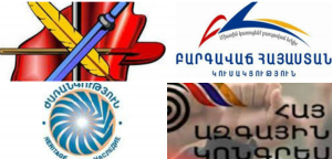 ՀՅԴ-ից ներկա են Արմեն Ռուստամյանը, Աղվան Վարդանյանն ու Արծվիկ Մինասյանը։ ՀԱԿ-ից այստեղ են Արամ Մանուկյանն ու Լեւոն Զուրաբյանը, իսկ «Ժառանգությունից» Ռուբիկ Հակոբյանն ու Թեւան Պողոսյանը։