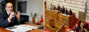 Ըսեմ նաեւ, թէ խորհրդարանին մէջ օրինագիծի քննարկումը երկար տեւեց, յետաձգումներով եւ երեսփոխաններու երկար շարքի մը ելոյթներով: Առաջին նստաշրջանէն երկրորդ յետաձգումին ընթացքին՝ գիտենք որ տեղի ունեցաւ վարչապետ Անտոնիս Սամարասի հանդիպումը Թուրքիոյ նախագահ Թայիփ Էրտողանին հետ, թրքական կողմէ նախաձեռնութեամբ: Դիւրին է ենթադրութիւն կատարել այս պարագային, մանաւանդ տեղեակ ըլլալով թէ խօսակցութեան ընթացքին Թուրքիոյ նախագահը բացայայտօրէն դրաւ հակացեղապաշտական օրէնքին մէջ Հայոց Ցեղասպանութեան պարագան չներառելու հարցը, որը սակայն պատշաճ պատասխանի արժանացաւ Յունաստանի վարչապետին կողմէ: