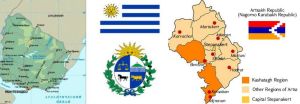 Գ.- Հարցը սակայն միայն Արցախի ինքնորոշման իրաւունքին չի վերաբերիր: Յայտարարութիւնը, երբ կը խօսի ընդհանրապէս հայ ժողովուրդի ինքնորոշման իրաւունքին մասին, նկատի կ՛ունենայ նաեւ Հայաստանի Հանրապետութեան տարածքային ամբողջականութիւնը, որուն հիմքերն են, ըստ Ուրուկուէյի արտաքին գործոց նախարարութեան, մայիս 1918-էն դեկտեմբեր 1920 անկախացած Հայաստանի Հանրապետութեան սահմանները: