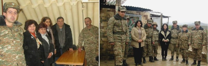 Հայրենյաց պաշտպանի օրվա առթիվ Հայ օգնության միությունը հերթական անգամ այցելել էր դիրքեր՝ շնորհավորելու առաջին գծում մեր երկրի սահմանը պաշտպանող և մեր բոլորի անդորրն ապահովող խիզախ տղաներին: Կազմակերպությունը, որ հայ կանանց ու աղջիկների կառույց է, լինելով մեր հասարակության մի մասնիկը, անտարբեր չէ և ոչ մի խնդրի հանդեպ, որ կա մեր կյանքում՝ մեր հայրենիքի հետ կապված, կամ՝ ընդհանրապես: