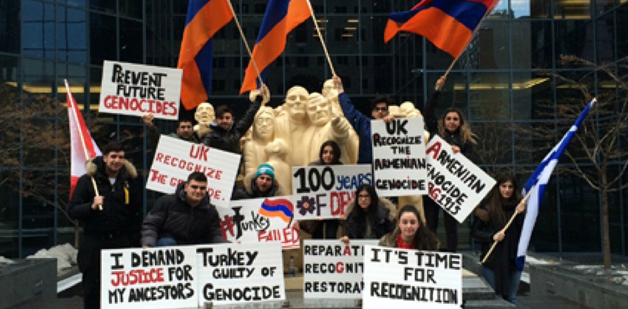 Ցեղասպանության 100-րդ տարելիցին առիթով` աշխարհի տարբեր երկրներում գտնվող ՀՅԴ Երիտասարդական միությունների անդամները միաժամանակ ցույց էին կազմակերպել տվյալ երկրների բրիտանական դեսպանատների առջև: