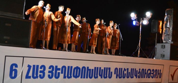 Հրապարակում հավաքված ավելի քան 10.000 արցախցիներն իրենց երգ ու պարով մասնակից եղան մեծ տոնակատարությանը: