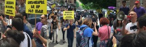 Այնուհետեւ ՀՅԴ երիտասարդական միության «Ոչ հոսանքի թանկացմանը» պաստառներով եւ բարձրաձայն կոչերով շարժվեցին Հանրային ծառայությունները կարգավորող հանձնաժողովի շենք եւ բնակչությանը կոչ անելով դուրս գալ բնակարաններից եւ մասնակցել բողոքի ակցիային: Պահանջագիր-նամակ հանձնվեց նաեւ Հանրային ծառայությունները կարգավորող հանձնաժողովի ներկայացուցչին։