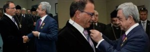 Հայաստանի Հանրապետութեան նախագահ Սերժ Սարգիսեանի գլխաւորած պատուիրակութեան Կիպրոս կատարած պաշտօնական այցելութեան ծիրէն ներս, Մարտ 16-ին Նիկոսիոյ Ազգային Առաջնորդարանի «Վահրամ Իւթիւճեան» սրահին մէջ տեղի ունեցած՝ կիպրահայ համայնքաին կառոյցներու եւ կազմակերպութիւններու ներկայացուցիչներու հանդիպումի ընթացքին, նախագահ Սարգիսեան պարգեւատրեց կիպրահայ ազգային գործիչ Սիմոն Այնէճեան «Մովսէս Խորենացի» շքանշանով: