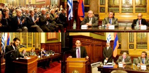 Ուրուկուայի Խորհրդարանի Նախագահութեան և ՀՅԴ Հայ Դատ Յանձնախումբի համատեղ կազմակերպուած Հայոց Ցեղասպանութեան 101-րդ տարեդարձի ոգեկոչման ձեռնարկը, Ապրիլ 25-ին կատարուեցաւ Ծերակոյտի նախասրահին մէջ որ բերնէ բերան լեցուած էր։