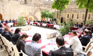 10 մայիսին խորհրդաժողովի մասնակիցները մեկնեցան Ասկերանի շրջանին մէջ գտնուող Տիգրանակերտ, ուր Լեռնային Ղարաբաղի Հանրապետութեան նախագահին հետ ունեցան բացօթեայ, սակայն դռնփակ հանդիպում մը: Նկատի ունենալով հանդիպման վայրն ու ընդգծելու համար այդ հանդիպումին հարազատներու միջեւ ըլլալու իրողութիւնը` նախագահը նախօրօք մասնակիցներէն խնդրած էր հանդիպման ներկայանալ ոչ պաշտօնական հագուստով: Շահեկան ու սրտբաց հանդիպումէն ետք ներկաները ճաշելու համար փոխադրուեցան բերդէն դուրս գտնուող երկար սեղան մը: