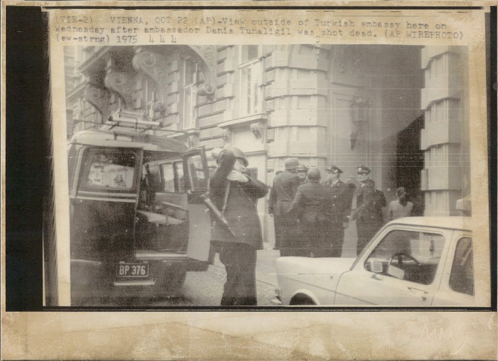 22 Հոկտեմբեր 1975-ի կէսօրին, երեք զինեալ երիտասարդներ ինքնաձիգ հրազէններով յարձակեցան Վիեննայի թրքական դեսպանատան շէնքին վրայ, սպաննեցին զէնքի դիմած պահակը եւ մտան դեսպան Հիւսէյին Տենիզ Թունէլճիլի գրասենեակը։ Յարձակման մանրամասնութիւնները փոխանցող մերօրեայ թրքական կայքէջերուն համաձայն՝ ահաբեկիչները թուրք դեսպանին հարցուցած են, թէ ի՞նքն է դեսպանը եւ, հաստատական պատասխան ստանալէ ետք, բրիտանական ու իսրայէլեան արտադրութեան իրենց գնդացիրներով կրակած են դեսպանին վրայ։