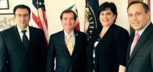 Ձախէն աջ՝ Օրենճ Քաունթիի Հայ Դատի յանձնախումբէն իրաւաբան Կարօ Մատէնլեան, քոնկրեսական Էտ Ռոյս, Արեւմտեան Ամերիկայի Հայ Դատի յանձնախումբի ատենապետ իրաւաբան Նորա Յովսէփեան եւ Ամերիկայի Հայ Դատի յանձնախումբի ատենապետ Ռաֆֆի Համբարեան