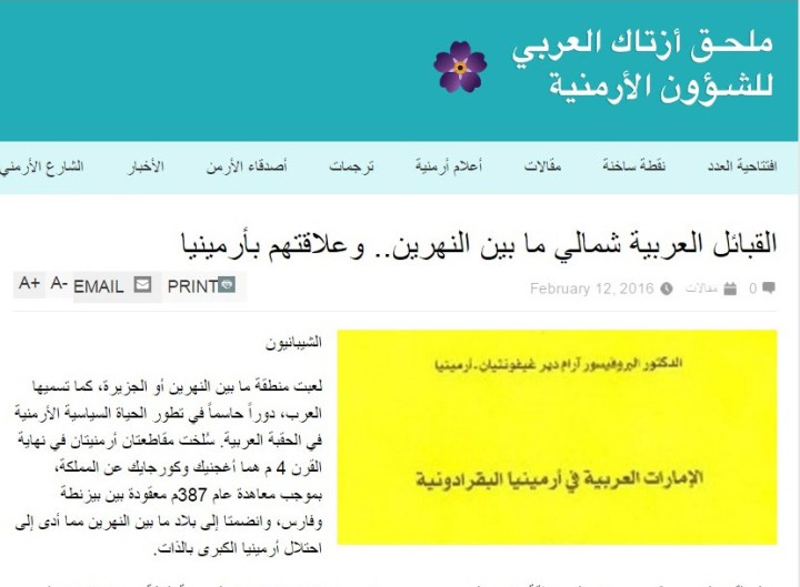 Հայ-արաբական յարաբերութիւններու նոր օղակ մը հանդիսացաւ «Ազդակ» օրաթերթի արաբերէն կայքը` ելեկտրոնային միջոցով արաբ ընթերցողին եւ արաբախօս հայերուն մատուցելով հայկական թեմայով բազմատեսակ նիւթեր: