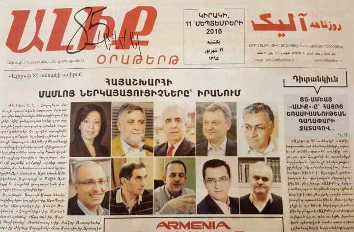 Թեհրանի «Ալիք» օրաթերթի 85-ամեակի ձեռնարկներուն մասնակցելու համար Թեհրանի մէջ համախմբուած են աշխարհասփիւռ հայալեզու մամուլի ներկայացուցիչներ, որոնց կարգին` «Վանայ ձայն»-ի տնօրէն Աւետիս Կիտանեան եւ «Ազդակ»-ի տնօրէն եւ գլխաւոր խմբագիր Շահան Գանտահարեան: