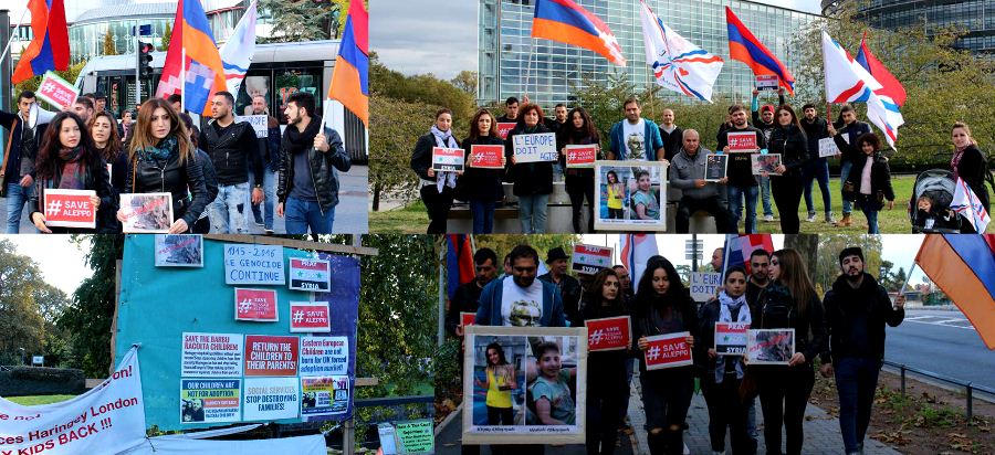 Հայ երիտասարդները անցել են Եվրապառլամենտի, Եվրադատարանի ու Եվրոխորհրադարանի շենքերի դիմացով, նրանք պարզել են «1915-2016. Ցեղասպանությունը շարունակվում է», «Եվրոպան պետք է գործի», «Փրկիր Հալեպը» գրություններով պաստառներ և վանկարկել «Ո՛չ նոր պատերազմներին», «Խաղաղությո՛ւն Սիրիային, Իրաքին և Լիբաբանին», «Խաղաղությո՛ւն Հալեպի հայությանը»: