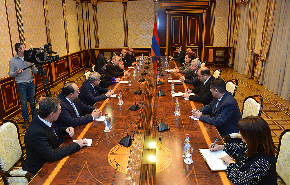 ՀՀ Նախագահ Սերժ Սարգսյանն այսօր հանդիպում է ունեցել սիրիահայ համայնքի ու հայկական մի շարք կառույցների ներկայացուցիչների, համայնքային խնդիրներով զբաղվող բարերարների և պատասխանատու պաշտոնյաների հետ: