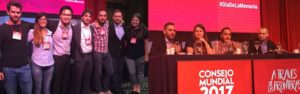 2017 թուականի մարտի 23 – 26-ին Արգենտինայում (Ռոզարիօ) կայացաւ Ընկերվարական երիտասարդների միջազգային միութեան (International Union of Socialist Youth, IUSY) Համաշխարհային խորհրդի ժողովը։ Ժողովին ներկայ էին Ը․Ե․Մ․Մ․-ի անդամ կազմակերպութիւններ շուրջ 200 ներկայացուցիչներով։ Հ․Յ․Դ․ Երիտասարդականը ժողովին մասնակցեց երկու ներկայացուցչով՝ Ֆլորենսիա Զանիքեան (Հ․Յ․Դ․ Հարաւային Ամերիկայի երիտասարդական միութիւն) և Ը․Ե․Մ․Մ․-ի փոխնախագահ և Սևծովեան տարածաշրջանի համակարգող Կարօ Շատոյեան: