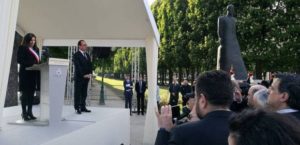 Օլանդը ծաղկեպսակ է դրել Կոմիտասի հուշարձանի մոտ։