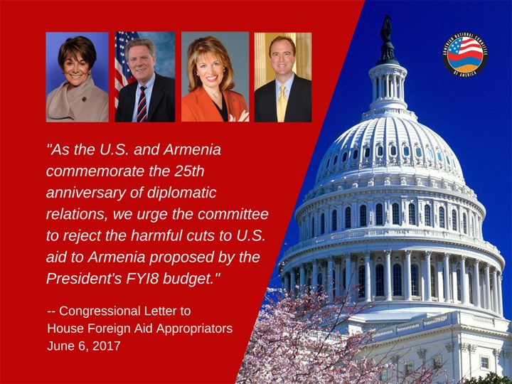 ԱՄՆ Ներկայացուցիչների պալատի անդամներ Ֆրենկ Փալոունը, Աննա Էշուն, Ջեքի Շփեյերը, Ադամ Շիֆն ու խորհրդի այլ դեմոկրատ անդամներ փորձում են կասեցնել Դոնալդ Թրամփի վարչակազմի՝ Հայաստանին տրամադրվելիք օգնության չափը կրճատելու վերաբերյալ առաջարկի իրագործումը. տեղեկացնում է ԱՄՆ Հայ Դատի հանձնախումբը: