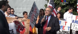 Մասաչուսեթս նահանգը ներկայացնող կոնգրեսական Ջիմ Մաքգովերնը, ելույթ ունենալով ցուցարարների առաջ, նշել է, որ Թուրքիայի սահմանադրությունը պետք է պաշտպանի խոսքի, հավաքների ազատությունը, սակայն նախագահ Էրդողանը արտակարգ դրություն է հայտարարել և այն օգտագործում է որպես արդարացում՝ քաղաքացիական հասարակության հանդեպ ճնշումներ գործադրելու համար: «Այդ ամենն արվում է նրա իշխանության ամրապնդման համար: Մենք դա անվանում ենք ավտորիտարիզմ՝ պարզ ու հստակ: Մարդու հիմնարար իրավունքներն ու ազատությունները ոտնահարվում են Թուրքիայում: Էրդողանը փորձեց նույն մարտավարությունը կիրառել նաև այստեղ, սակայն դա տապալվեց: Այդ մարտավարությունը չի աշխատում այստեղ՝ ԱՄՆ-ում: Միացրեք ձեր բարձրախոսներ և թող Թուրքիայի դեսպանատունը լսի, որ մենք չենք լռեցվելու: Մենք չենք լռեցվելու»,- կոչով ամփոփեց իր խոսքը կոնգրեսական Մաքգովերնը: