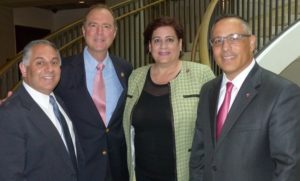 Ձախէն աջ՝ Արեւելեան Ամերիկայի Հայ Դատի յանձնախումբի ատենապետ Սթիւ Մեսրոպեան, քոնկրեսական Էտըմ Շիֆ, Արեւմտեան Ամերիկայի Հայ Դատի յանձնախումբի ատենապետ Նորա Յովսէփեան եւ Ամերիկայի Հայ Դատի յանձնախումբի ատենապետ Ռաֆֆի Համբարեան