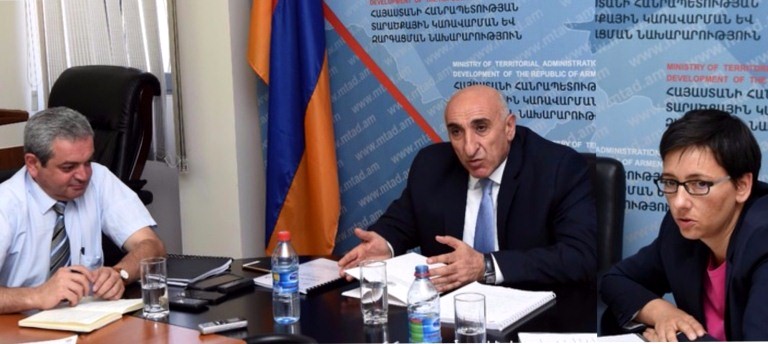 ՀՀ տարածքային կառավարման և զարգացման նախարարությունում այսօր տեղի է ունեցել «Համայնքների տարեկան աշխատանքային պլաններ» խորագրով աշխատաժողով, որին ներկա են գտնվել նախարար Դավիթ Լոքյանը և Գերմանիայի միջազգային համագործակցության ընկերության (ԳՄՀԸ) «Լավ տեղական ինքնակառավարում Հարավային Կովկասում ծրագրի» Հայաստանի թիմի ղեկավար Քաթրին Շեֆերը: