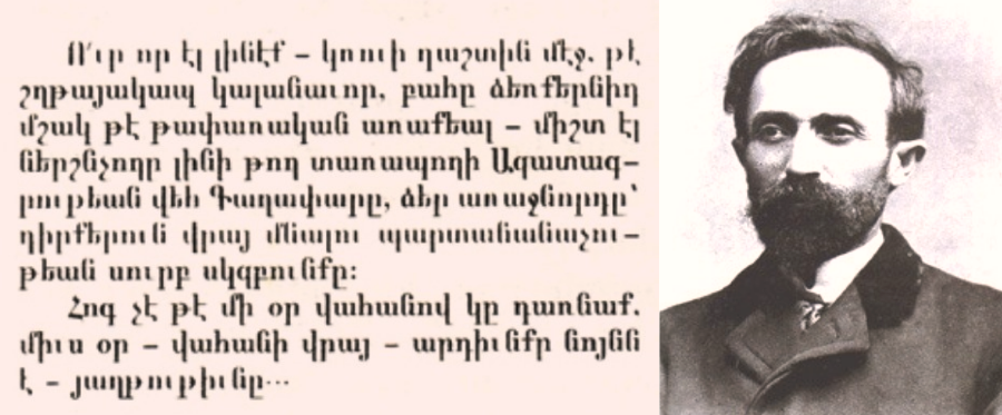 Եւ ամբողջ հայ ժողովուրդը խորապէս ցնցուեցաւ, երբ 27 Հոկտեմբեր 1913ին այդպէ՛ս՝ յանկա՛րծակի կտրուեցաւ կեանքի թելը Գաղափարի Մեծ Ուսուցիչին, Դաշնակցութեան Խիղճը մարմնաւորած Հայոց Ազատամարտի «Աշխարհիկ Սուրբ»ին եւ «Ընկերային Նազովրեցի»ին։
