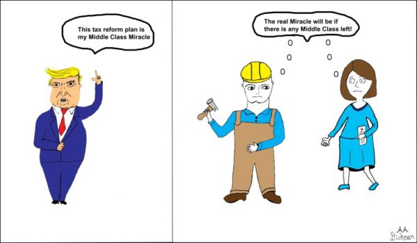 Ի՞նչ նպատակով է որ, կը կարծէք, նախագահն ու իր բարեմիտ գործակիցները ձեռնարկած են (այլապէս ձախաւեր) «Օպամա-քէր»ը ջնջելու կամ շահատուրքերու նոր դրութիւն մը օրինականացնելու։ Քննադատները միայն մեղադրանքներ կը տեղացնեն, ըսելով, որ միլիոնաւորներ պիտի զրկուին առողջական ապահովագրութենէ, իսկ շահատուրքի նոր օրէնքըն առաւելագոյն օգտուողնեը պիտի ըլլան հսկայ ընկերութիւններն ու միլիոնատէրերը։ Քննադատները պարզապէս կարճատես են. անոնք չեն տեսներ, որ նախագահը ամբողջ ժողովուրդը կը մղէ… հարաստանալու եւ միլիոնատէր դառնալու։