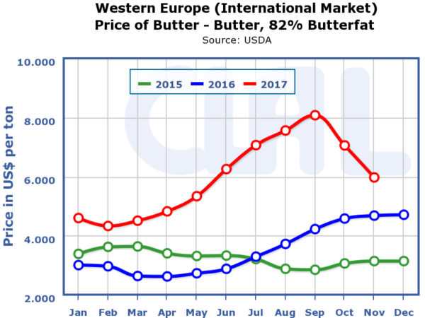 Եվ այսպես, վերջին մեկ տարվա ընթացքում կարագի գինը միջազգային շուկայում ավելացել է մոտ 60 տոկոսով, ինչը պայմանավորված է 2016 թվականին ԵՄ-ում և Ավստրալիայում կարագի արտադրության ծավալների կրճատմամբ, համապատասխանաբար՝ 5.5 տոկոս և 18 տոկոս: Ավստրալիայում կարագի արտադրության ծավալները կրճատվել են 2016 թվականի երաշտի պատճառով, ինչի արդյունքում՝ կտրուկ նվազել է անասնագլխաքանակը և կաթի մեջ յուղայնության աստիճանը, ինչպես նաև այս ժամանակահատվածում ԱՄՆ-ում և Ասիայում շեշտակի ավելացել է պանրի և սերուցքի պահանջարկը և մթերված կաթի մեծ մասը ուղղվել է այս ապրանքների արտադրությանը: 2016 թվականի ընթացքում Ավստրալիան արտահանել է շուրջ 40 հազար տոննա կարագ: 2016 թվականի ընթացքում կարագի արտահանման ծավալները 3 տոկոսով նվազեցրել է նաև այս ոլորտում առաջատար երկրներից՝ Նոր Զելանդիան: ԵՄ-ում կարագի արտադրության ծավալների անկմանը նպաստել է ԵՄ-ի կարագի շուկայի ազատականացումը և կաթ արտադրող տնտեսվարողների սուբսիդավորման և այլ արտոնությունների կրճատումը: Արևմտյան Եվրոպայի երկրներում մեծածախ նորզելանդական կարգի 1 կգ-ի գինն առավելագույնին է հասել 2017 թվականի սեպտեմբերին՝ 8.075 ԱՄՆ դոլար, հոկտեմբերին՝ 7.05 ԱՄՆ դոլար, նոյեմբերին՝ 5.969 ԱՄՆ դոլար, նույն միտումն է գրանցվել նաև համաշխարհային շուկայում, այսինքն՝ վերջին ամիսների ընթացքում արձանագրվել է կտրուկ գնանկում, ինչը, ցավոք, չի դիտվում Հայաստանում:
