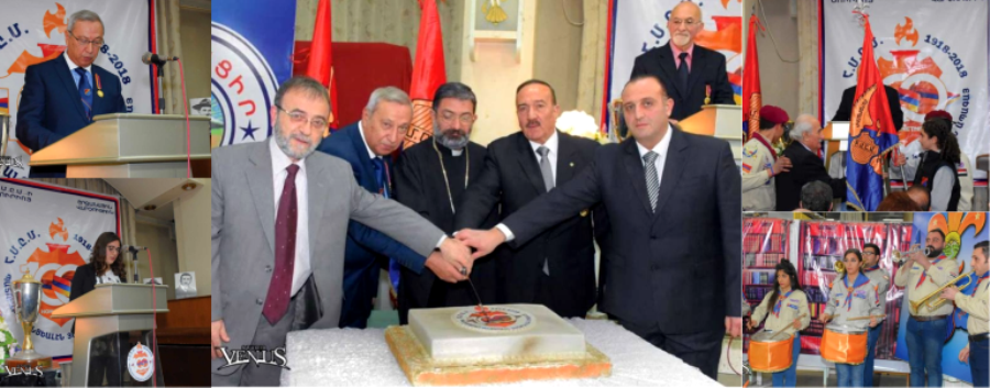 Ապա պաստառի վրայ ներկայացուեցան վաստակաւոր ՀՄԸՄ-ականներ Մանուկ Իսկէնտէրեանի (Հայաստան) եւ Պօղոս Պալէոզեանի արտասանած բարեմաղթութիւնները: Այնուհետեւ հատուեցաւ 100-ամեակի կարկանդակը: 100 տարիներու փորձառութեամբ եւ վաստակով բեռնաւորուած ՀՄԸՄ-ը այսօր հայ հասարակութեան կը ներկայանայ «Պատուաբեր Անցեալէն Յաղթական Ապագայ» կարգախօսով՝ ծառայելու, պայքարելու եւ գոյատեւելու վճռակամութեամբ: