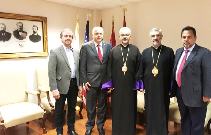 ԿԼԵՆՏԷՅԼ.- Բերիոյ թեմի առաջնորդ Շահան արք. Սարգիսեան անցեալ Ուրբաթ, 15 Դեկտեմբերին, Արեւմտեան թեմի առաջնորդ Մուշեղ արք. Մարտիրոսեանի եւ Սուրիահայութեան Օժանդակութեան մարմինին մէջ ՀՅԴի ներկայացուցիչ Վարդան Տէրտէրեանի ընկերակցութեամբ այցելեց ՀՅԴ Արեւմտեան Ամերիկայի Կեդրոնական կոմիտէի (ԿԿ) գրասենեակ, ուր հանդիպեցաւ ԿԿի ներկայացուցիչ Տարօն Տէր Խաչատուրեանի եւ ՀՅԴ Բիւրոյի անդամ դոկտ. Վիգէն Եագուպեանի հետ: