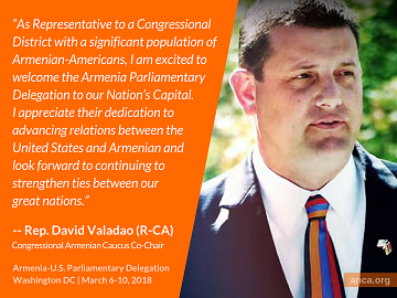 Այս առիթով, Քոնկրեսի Հայկական համախմբումի համաատենապետ Տէյվիտ Վալատաօ ողջունած է հայկական պատուիրակութեան Ուաշինկթըն այցելութիւնը՝ դրուատելով երկու երկիրներուն միջեւ յարաբերութիւնները սերտացնելու միտող անոնց նախաձեռնութիւնները։