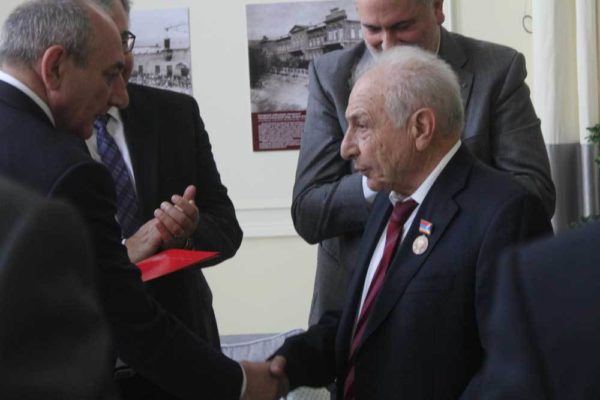 Այնուհետեւ Արցախի Հանրապետութեան նախագահի մամլոյ բանբեր Դաւիթ Բաբայեան կարդաց նախագահական հրամանագիրը` պատմաբան Երուանդ Փամպուքեանը պարգեւատրելու գծով: 30 օգոստոս 2016-ին ստորագրուած հրամանագիրը կը նշէ, որ ղեկավարուելով Լեռնային Ղարաբաղի Հանրապետութեան սահմանադրութեան 68-րդ յօդուածի 17-րդ կէտով եւ հիմք ընդունելով «Լեռնային Ղարաբաղի Հանրապետութեան պետական պարգեւներու մասին» օրէնքը` հանրապետութեան նախագահը կ՛որոշէ ի նշանաւորումն Լեռնային Ղարաբաղի Հանրապետութեան հռչակման 25-ամեակին եւ պետական, հասարակական, քաղաքական, իրաւական, կրթական, մշակոյթի եւ տնտեսական ոլորտներուն մէջ Լեռնային Ղարաբաղի Հանրապետութեան մատուցած ծառայութիւններուն համար «Մխիթար Գոշ» մետալով պարգեւատրել հայագէտ եւ պատմաբան Երուանդ Փամպուքեանը: