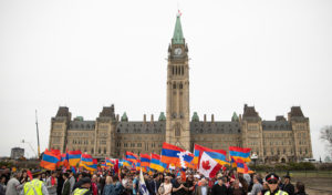 Երեքշաբթի, 24 Ապրիլ 2018-ին, Թորոնթոյէն, Գեմպրիճէն, Լաւալէն, Մոնթրէալէն, Համիլթընէն, Սէնթ Գաթրինզէն եւ այլ վայրերէ Օթթաուա ժամանեցին աւելի քան 1500 հայորդիներ եւ Գանատայի խորհրդարանին առջեւ միասնաբար վերանորոգեցին պահանջատիրութեան իրենց ուխտը: Հաւաքին իրենց պետական դրօշները պարզած միացան յոյն, հրեայ եւ ասորի համայնքներու պատուիրակութիւններու անդամները, որոնք Օթթաուա ժամանած էին իրենց զօրակցութիւնը յայտնելու հայութեան։ Հաւաքն ու քայլարշաւը կազմակերպուած էին Գանատայի Հայ Դատի յանձնախումբին կողմէ։