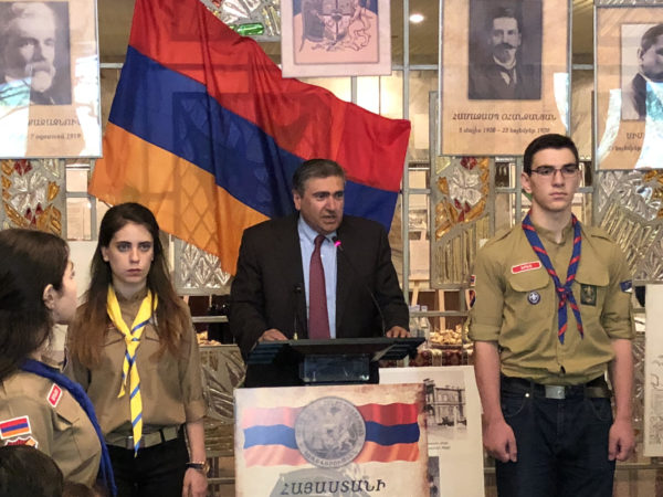 ՀՅԴ «Կոմիտաս» կոմիտեության ներկայացուցիչ Դրո Բազիկյանի խոսքով՝ 100 տարի առաջ այս օրերին հայ ժողովուրդը երկաթե շերեփի իրավունքով հռչակեց ազատ, անկախ և միացյալ Հայաստանի Հանրապետությունը: Ըստ նրա՝ ՀՅԴ-ն իր կազմավորման առաջին իսկ օրերից լծվեց հայ ժողովրդի ոտնահարված իրավունքների պաշտպանության և դրանց վերականգնման դժվարին գործին: «Այս աշխատանքի արգասիքը կարելի է համարել 1918-ի անկախության հռչակումը, որ իրագործվեց Դաշնակցության գաղափարական ոգու ներշնչումով և համայն հայության միացյալ ջանքերով: Անկախության հռչակումից հետո ՀՅԴ-ն իր ամբողջ ներուժով լծվեց պետականաշինության աշխատանքին, պետականություն, որից 700 տարի զուրկ է եղել հայ ժողովուրդը: Չնայած 1918-ին ձեռք բերված անկախության կարճ կյանքին` այն հանդիսացավ անկախ պետականության գաղափարի և պետական մտածելակերպի ձևավորման աղբյուրը: Փառք մայիսյան հաղթանակները կերտողներին, շնորհավոր մայիսի 28»,- ասաց Բազիկյանը: