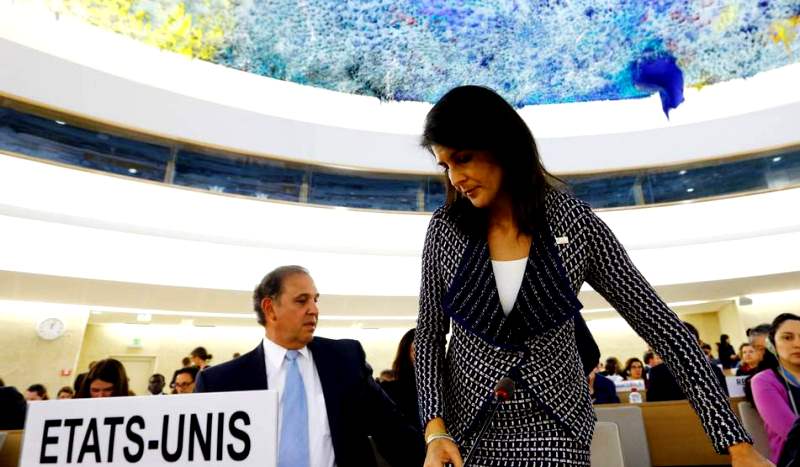 Մ.Ա.Կ.-ի մէջ Միացեալ Նահանգներու դեսպան եւ նախագահ Թրամփի հլու կամակատար Նիքի Հէյլի յայտարարեց, թէ իր երկիրը կը քաշուի այս խորհուրդէն, այն պատճառով, թէ քաղաքական մութ հաշիւներ կան եւ թէ ճնշումներու արդիւնքով մարդկային իրաւունքները զոհը դարձած են այս անհանդուրժելի մթնոլորտին։