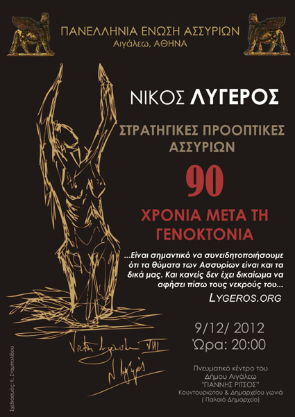 Ասորիներու ցեղասպանութեան 90ամեակին նուիրուած ձեռնարկ մը տեղի ունեցաւ Կիրակի 9 Դեկտեմբերին, Աթէնքի արուարձաններէն Էղալէոյի «Եանիս Ռիցոս» մշակութային կեդրոնէն ներս: