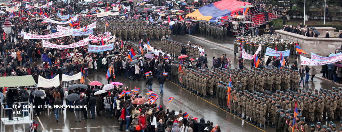 Ինչո՞ւ չհպարտանալ: Շարժում էր, դարձաւ ազատամարտ, որուն վճռական յաղթանակի պսակը դարձաւ Արցախի անկախ Հանրապետութիւնը, որուն բոլոր խորհրդանիշները երէկ մասնակից էին քսանհինգերորդ տարեդարձին առթիւ կազմակերպուած հաւաքին: