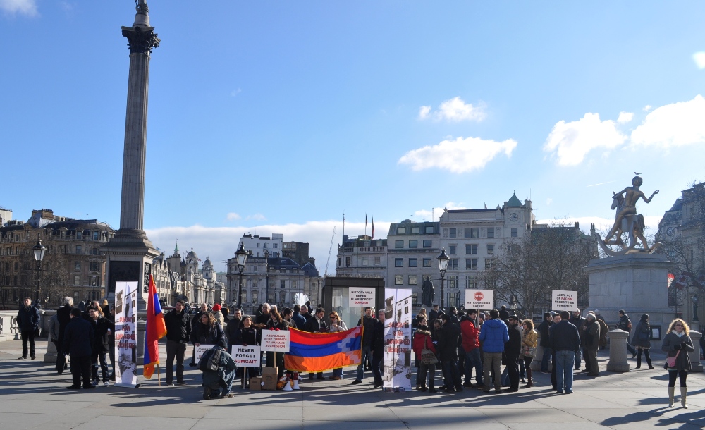 Մարտի 3-ին, նախաձեռնությամբ ՀՅԴ Խանասոր Երիտասարդական միության, Լոնդոնի հանրահայտ Թրաֆալգար հրապարակում կազմակերպվեց սումգայիթյան ջարդերի 25-ամյա տարելիցին նվիրված լուռ բողոքի ակցիա: Ավելի քան երեք ժամ տեւած ակցիային ընդհանուր առմամբ մասնակցեցին շուրջ յոթ տասնյակ հայեր: Խաղաղ ցույցի ընթացքում պարզվել էին Հայաստանի ու Արցախի դրոշները, ինչպես նաեւ բազմաբնույթ բողոքի պաստառներ: Ցույցի մասնակիցները նաեւ անցորդներին էին բաժանում Սումգայիթյան ողբերգության մասին պատմող բրոշյուրներ:
